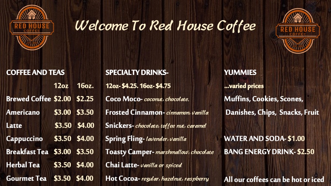 If you're craving something cozy and delicious, the Red House Coffee Menu is a must-try. Nestled at 1590 E Spring St in Cookeville, TN, this charming spot offers a wide variety of options that make every visit feel like a treat. Whether you're in the mood for a perfectly brewed coffee to jumpstart your day or a refreshing iced drink to unwind, they've got you covered. The menu features not just rich coffees, but also a selection of pastries and light bites that pair perfectly with any drink.